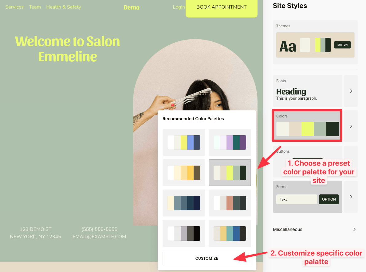 You can still customize things like font colors and buttons if you want, but the pre-defined options (like color palettes and font pairings) are there to help beginners create a good-looking site without much effort.