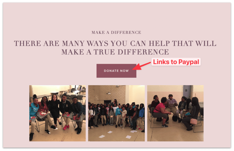 So, to accept recurring donations, you'll need to integrate another platform, like PayPal or GiveButter. The In Her Shoes Foundation does this on their Squarespace site as an example.